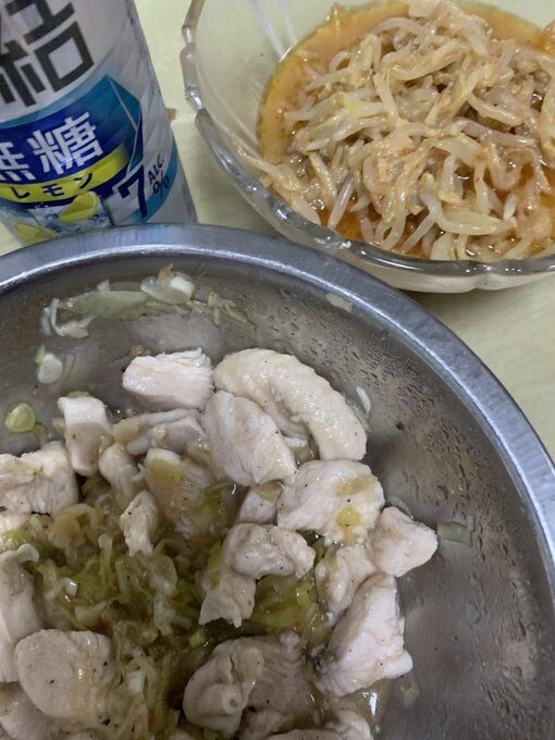 - 5月4日 夜 鶏ネギ塩と辛味噌モヤシ