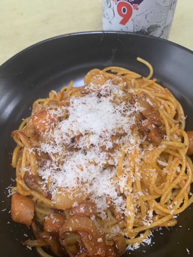 ナポリタン完成! ハードチーズを削ってかけるとグッド!