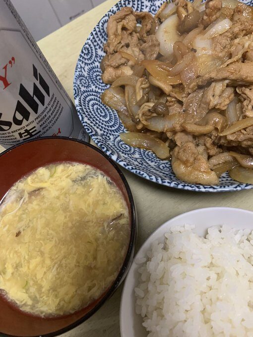 豚肉の生姜焼きとフカヒレ風味玉子スープを作ってもらった