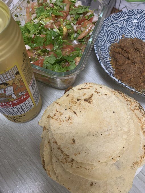 最近、嫁さんがトルティーヤ焼くのにハマっているのでタコスパーティ