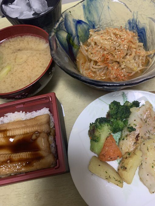 - 5月1日 夜 テイクアウトの穴子丼とつまみもやし