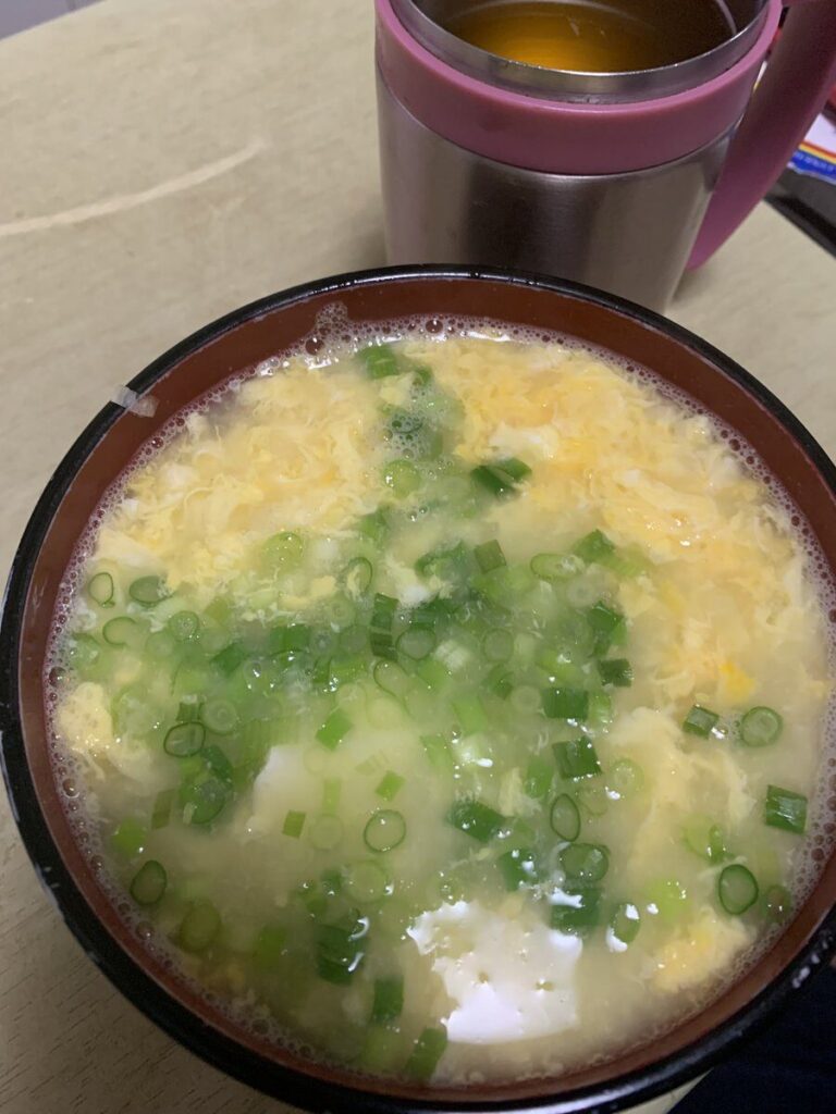 明日は人間ドックなのでやさしめにたまご雑炊を作ってもらった。