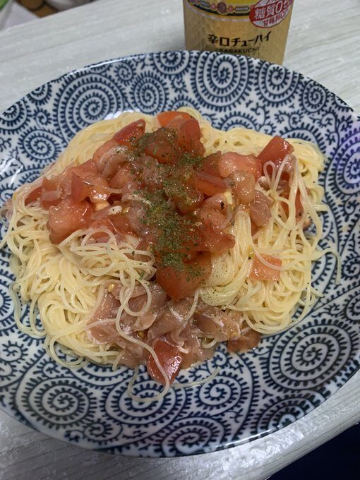 - 5月18日 夜 トマトと生ハムの冷製パスタ