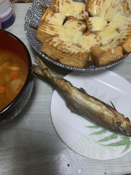 6月2日 夜 鮎の塩焼きとチーズ厚揚げ