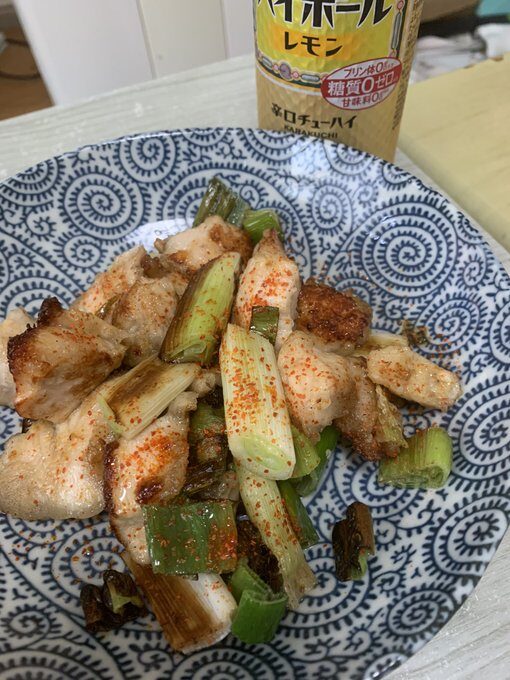 6月8日 夜 鶏むね肉でネギ塩焼き