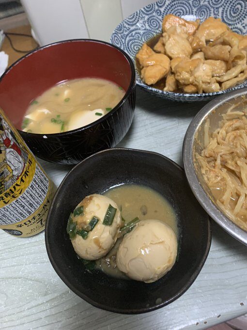 鶏肉とニラの煮物とミネストローネスープと玄米ご飯を作ってもらった。