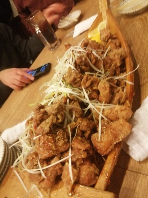 居酒屋で唐あげ盛り。この量は凄かった!一人で換算すると100円ぐらい