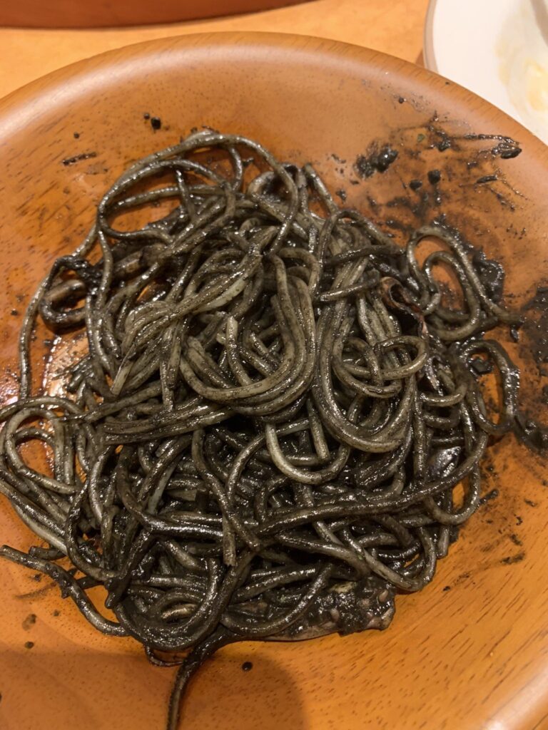 家で作れなさそうなイカスミパスタなどを注文!