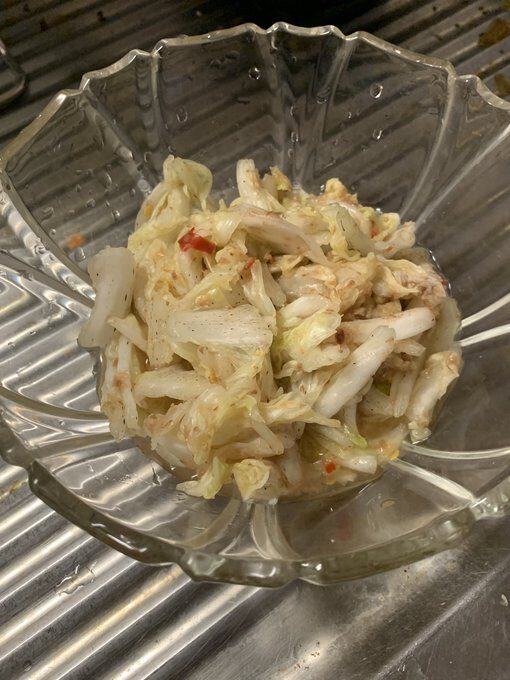 カレーの添えに白菜の浅漬けを作った。 大型の白菜を二個もらい使い道をかんがえた。 一口大に切った白菜をジプロックに入れ、塩、砂糖、おろしニンニク、鰹粉、味の元 鷹の爪を追加しもみこみ、2時間ほど放置。冷蔵庫で冷やして完成!