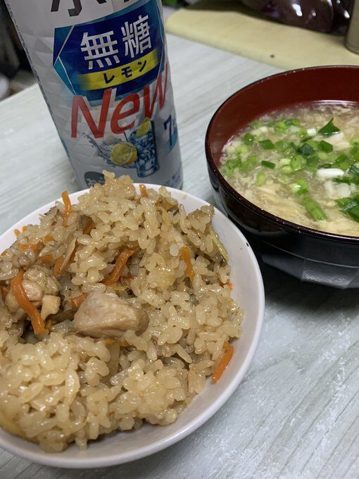 わが家で人気の鳥の炊き込みご飯と玉子スープを作った