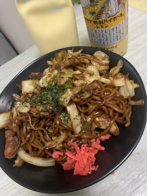 昼はおにぎり1つだったのでがっつり頂く。 マヨネーズもかける!