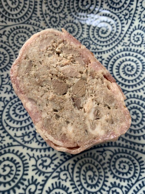 パテ・ド・カンパーニュはマリネにした豚肉にレバーペーストを混ぜて、ベーコンで周りを囲い型に入れて焼き上げるフランスの郷土料理
