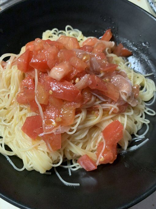 家族のリクエストにより生ハムとトマトの冷製パスタを再び作成