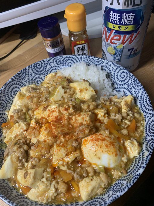 奥さん作。辛いのが好きなので辣油とカイエンペッパーを沢山入れた