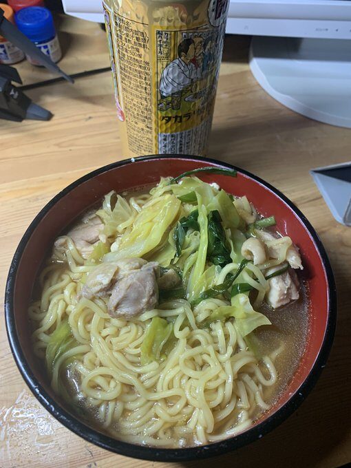 1月28日 夜 鶏もも肉とキャベツのスープ + ラーメン