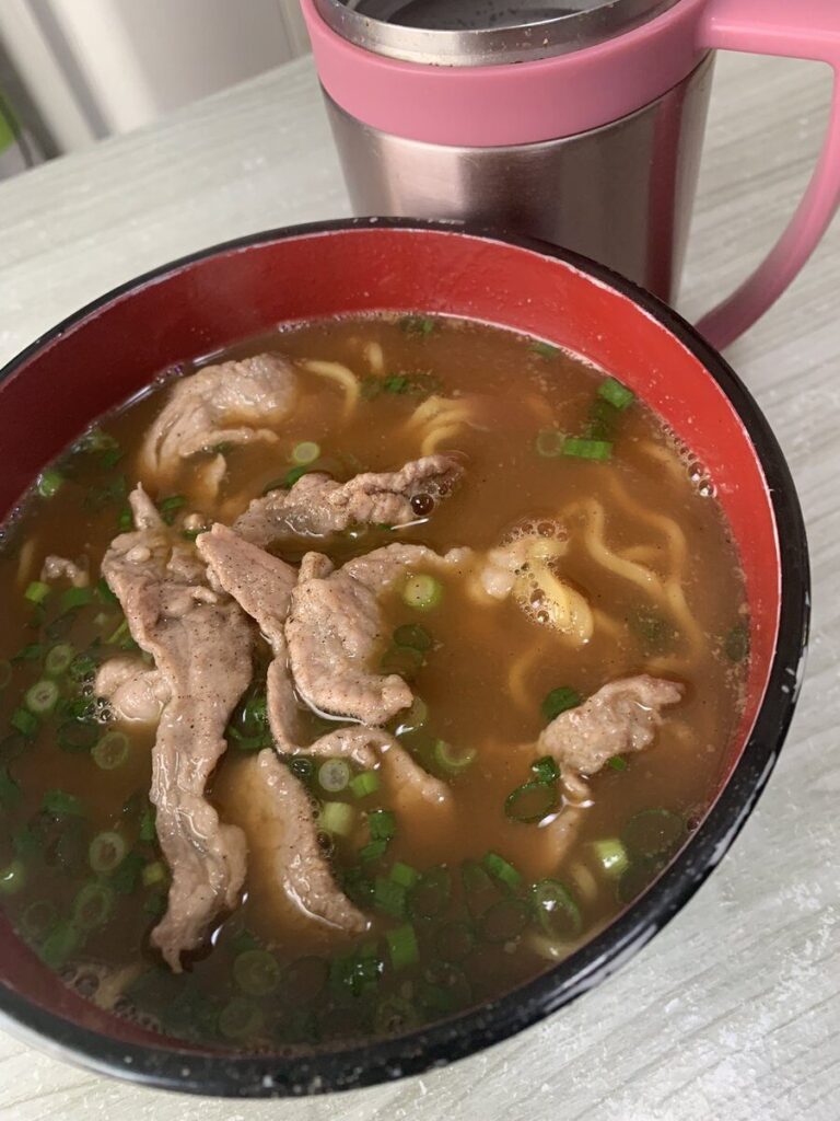 3. 2月2日 夜 ふるさと納税の牛タンを解凍したのと、味噌汁