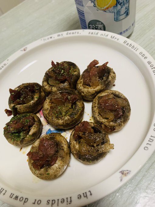 31. 2月20日 晩ご飯前のおつまみ マッシュルームの生ハムつめ