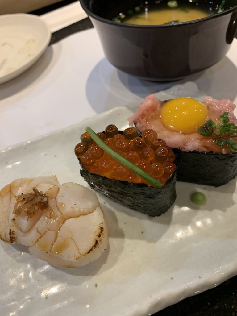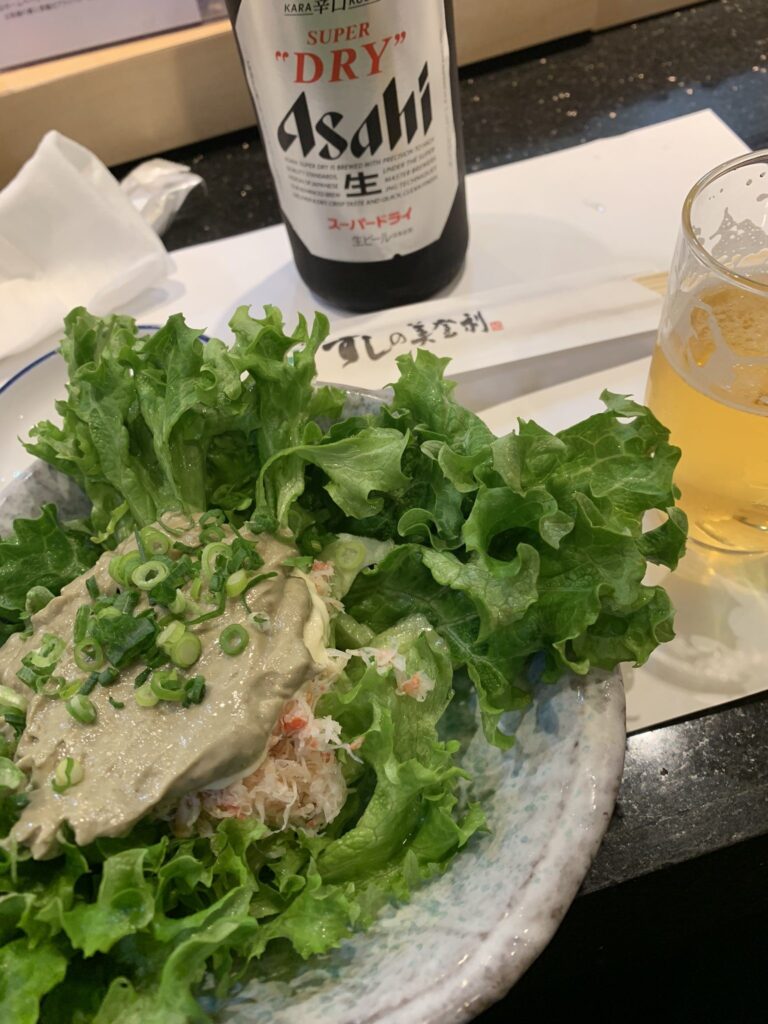 3千円くらいのコースだがネタが大きく腹一杯でリーズナブル。カニ味噌のサラダも絶品!