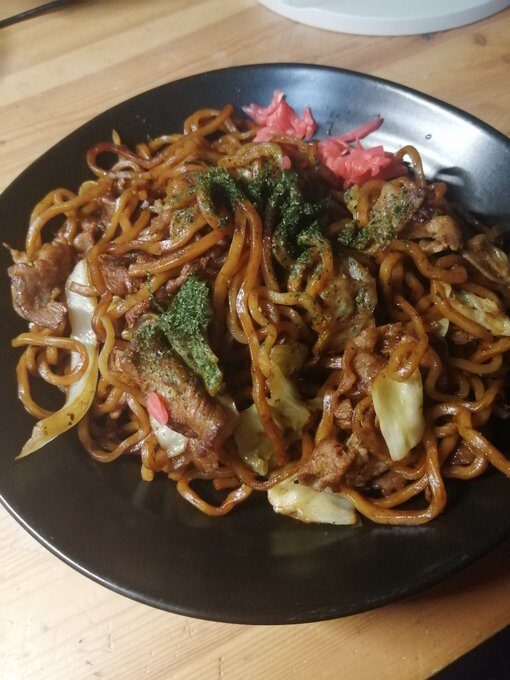さっき、小腹がすきすぎて賄い丼食べたけど本日のメインは作り置きしてもらった焼きそばです
