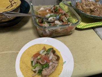 息子が奥さんのタコスのトルティーヤ作りを手伝いタコスパーティ