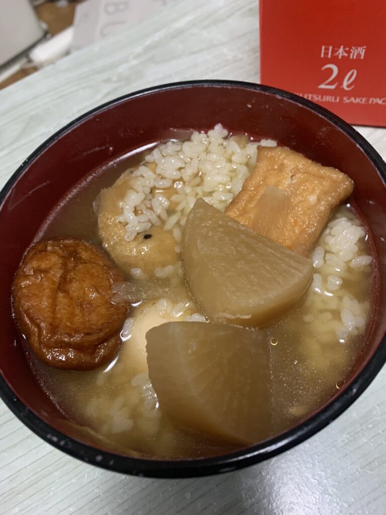 寒い日のおでんはあったまりますね。 さっそく汁かけご飯で食べました。 卵も必須です!